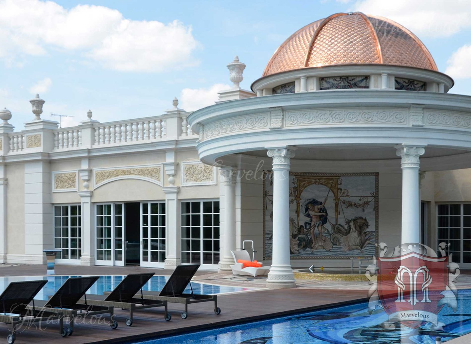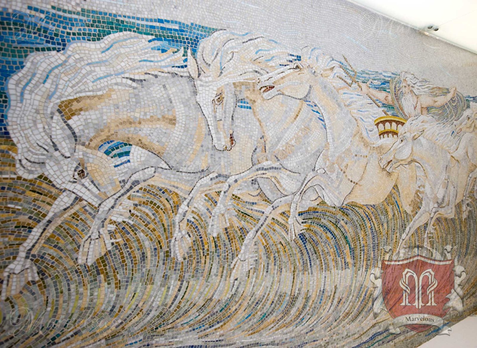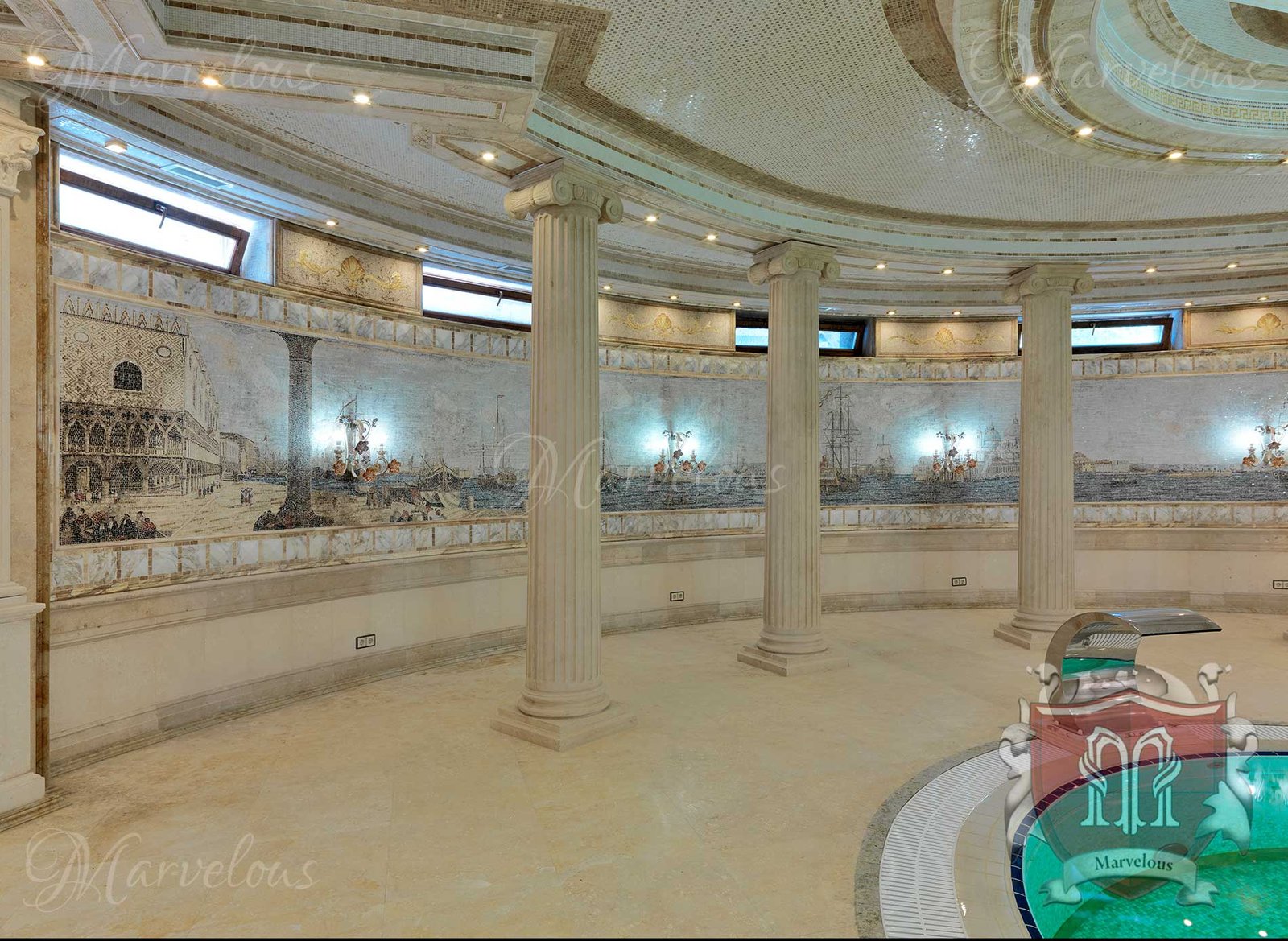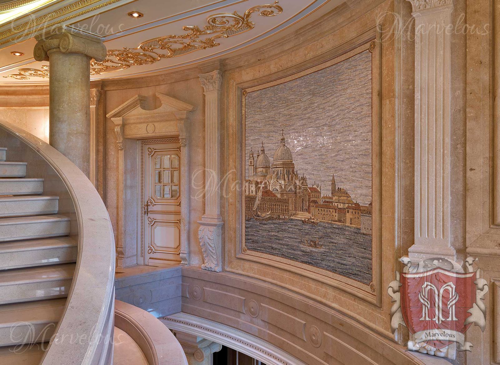 Each of the pieces of mosaic wall art epitomize the natural landscape and are there to let the water projects shine. Each particular design depicts very specific situations and historical fiction. The marble patterns bring to life idyllic places, manifesting almost an escape, as one gazes into the works and feel as though they were there, in history. The exclusive and unique designs make quite a statement and for any visitor who walks into the room, leave a lasting impression.