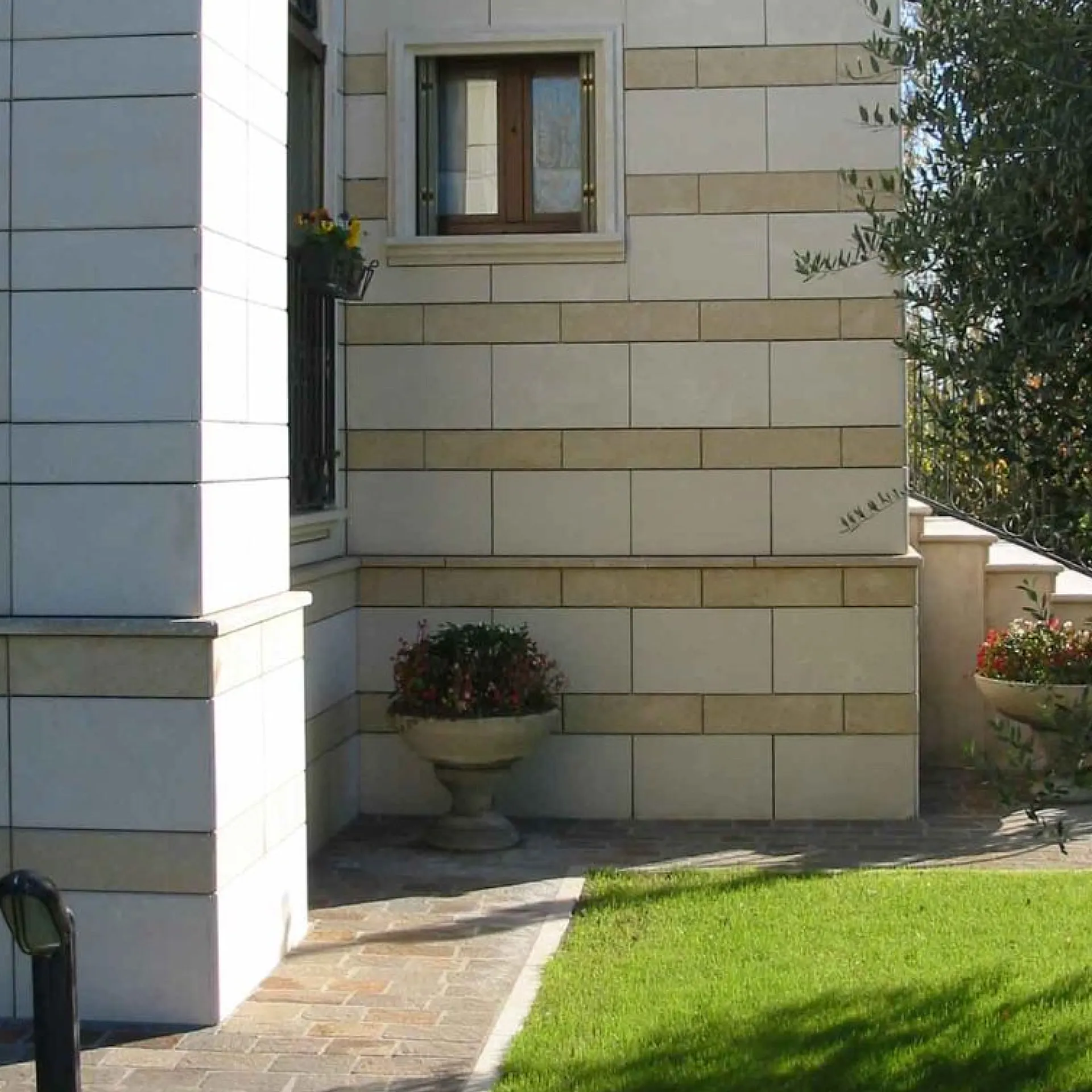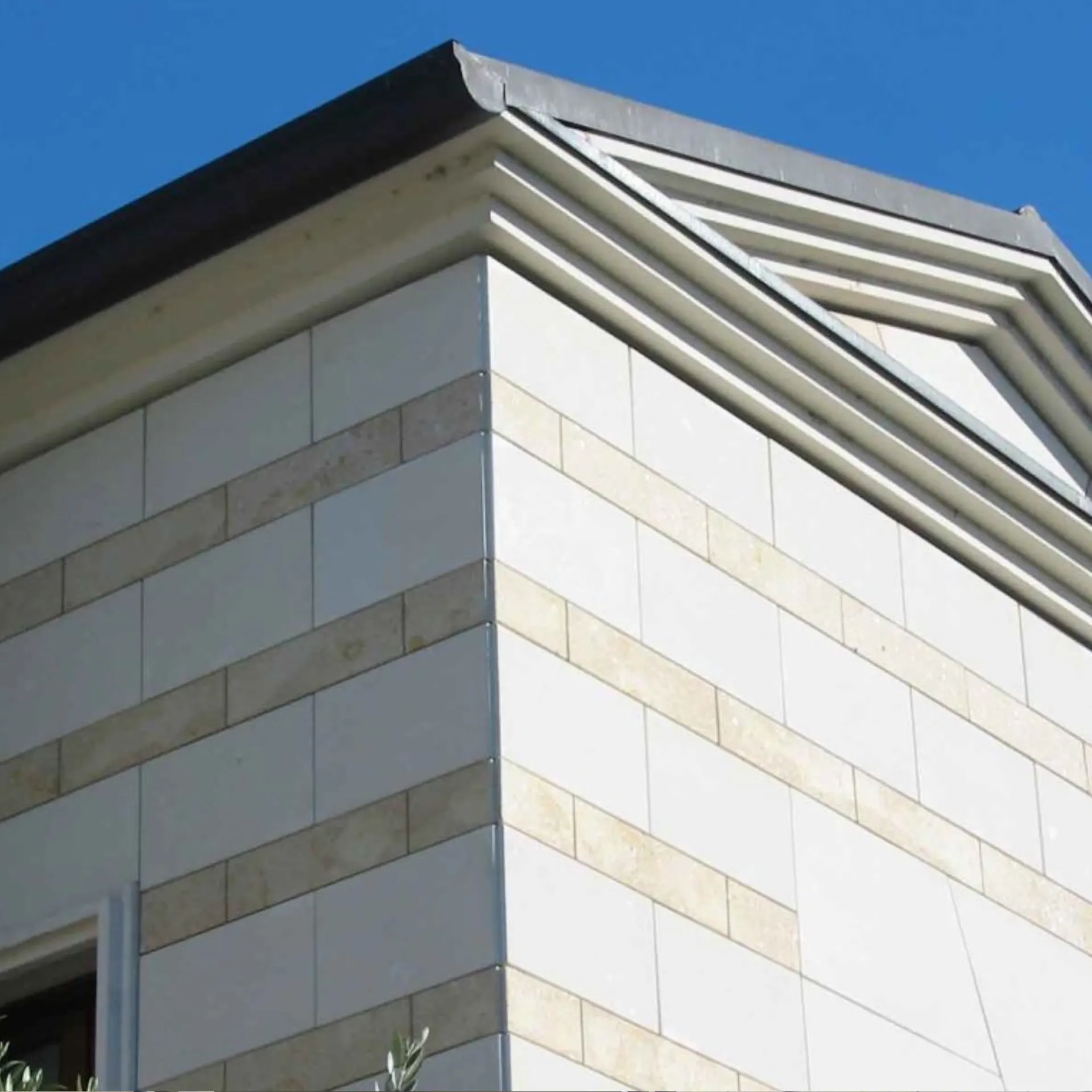 In this refined residential project, we set out to craft a visually compelling entryway that would set the tone for the entire façade. The design centers around a grand arched opening clad in two complementary shades of Southern European limestone — one light, one slightly darker — selected specifically for their subtle contrast, natural texture, and visual harmony. Each stone was carefully fabricated in 5 cm thick panels to ensure a solid architectural presence and long-term durability.