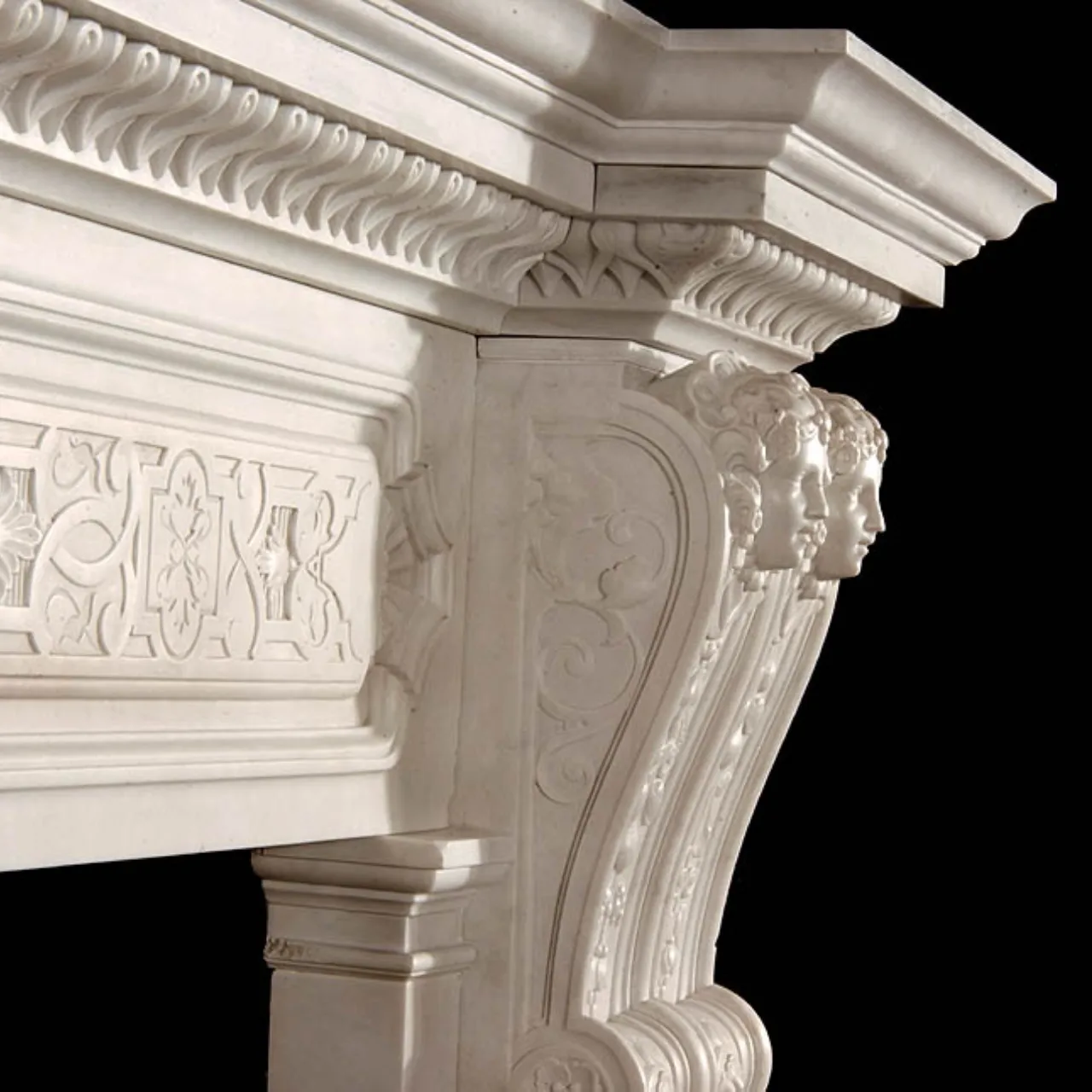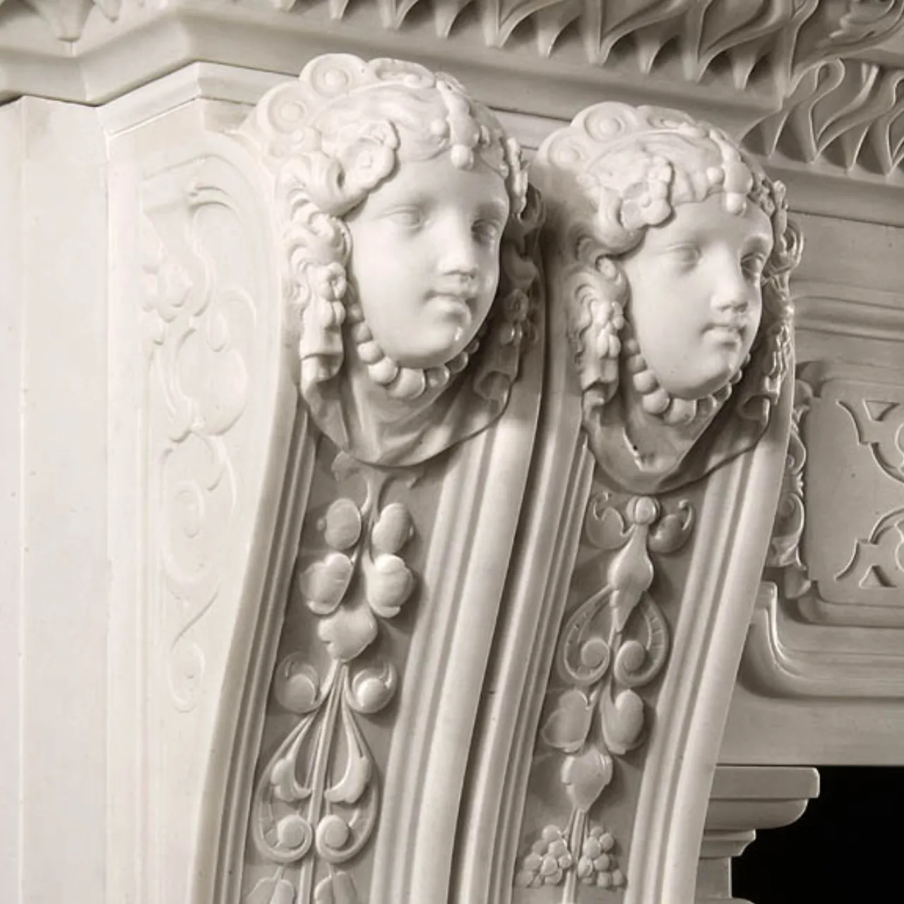 The Antique Italian Marble Bianco Carrara C fireplace mantels are a stunning blend of historical charm and timeless elegance. Sourced from the famous Carrara quarries in Italy, this marble is prized for its pristine white background and soft, graceful gray veining, making it a perfect choice for antique-style mantels.