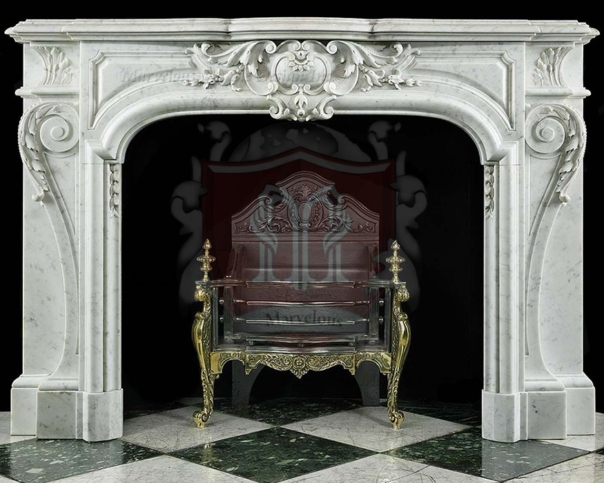 An antique 323 Bianco Carrara French Louis mantel, hand-carved masterpiece which adds warmth to any space. It’s a statement of refined taste and enduring style. Crafted from the finest Bianco Carrara marble, renowned for its pure white color and delicate veining, this mantel is a testament to exceptional craftsmanship. The fancy French Louis design with its pretty curves and fancy details makes your home look rich and fancy. It goes with both old-fashioned and modern styles. Imagine how nice it would be to sit by a warm fire and watch the light dance on the shiny marble. This Bianco Carrara French Mantel is created specially to your taste and vision. It is also carved with precision to ensure it fits perfectly in your house. Therefore, you can rest assured to get the real aesthetic value of a custom-made fireplace surround.