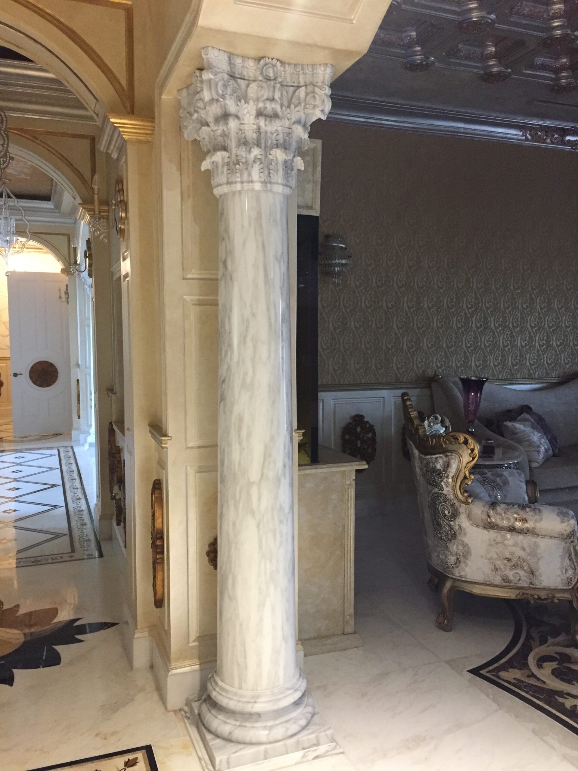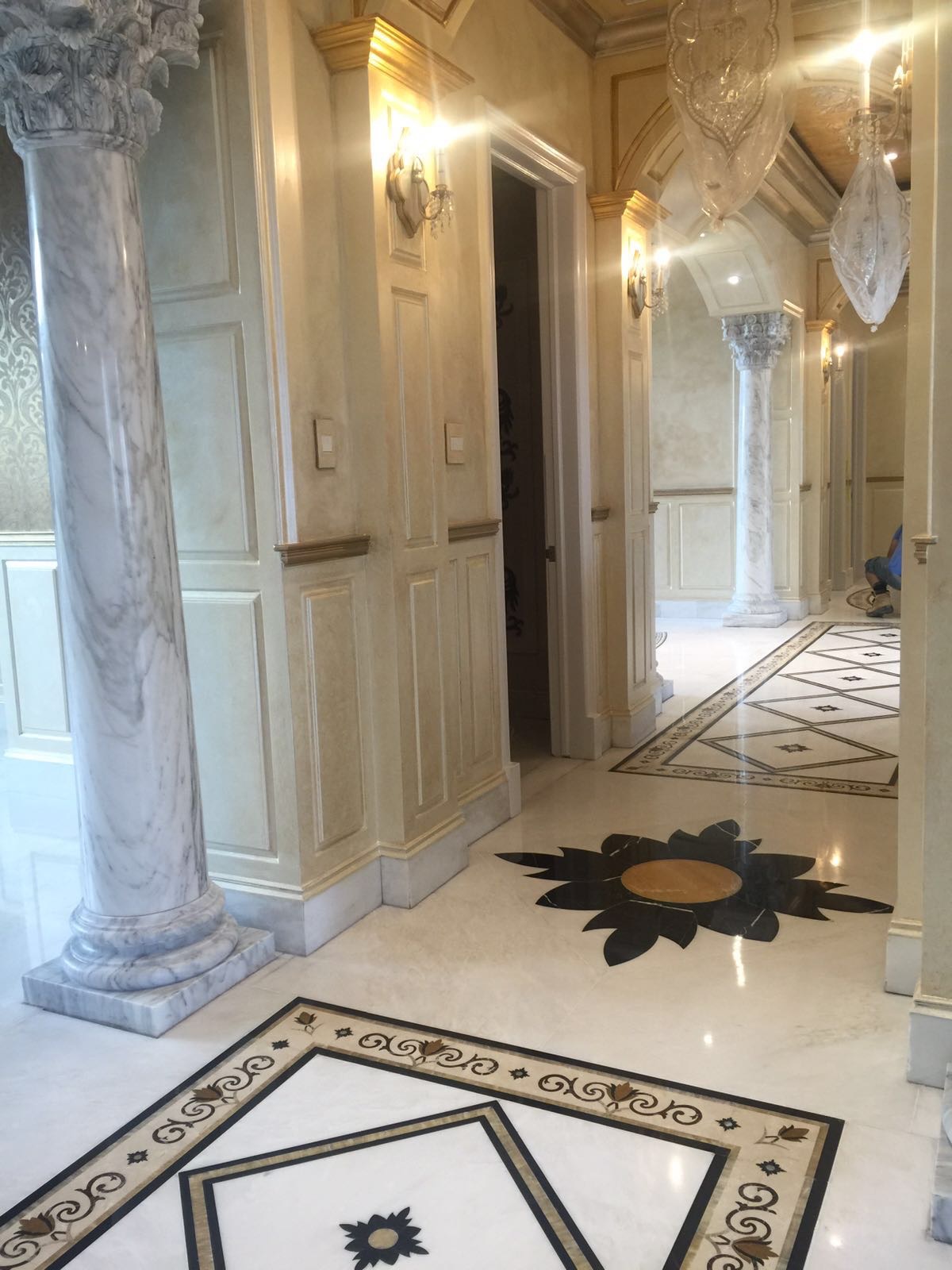 French Chateau Foyer Marble Floor Design
