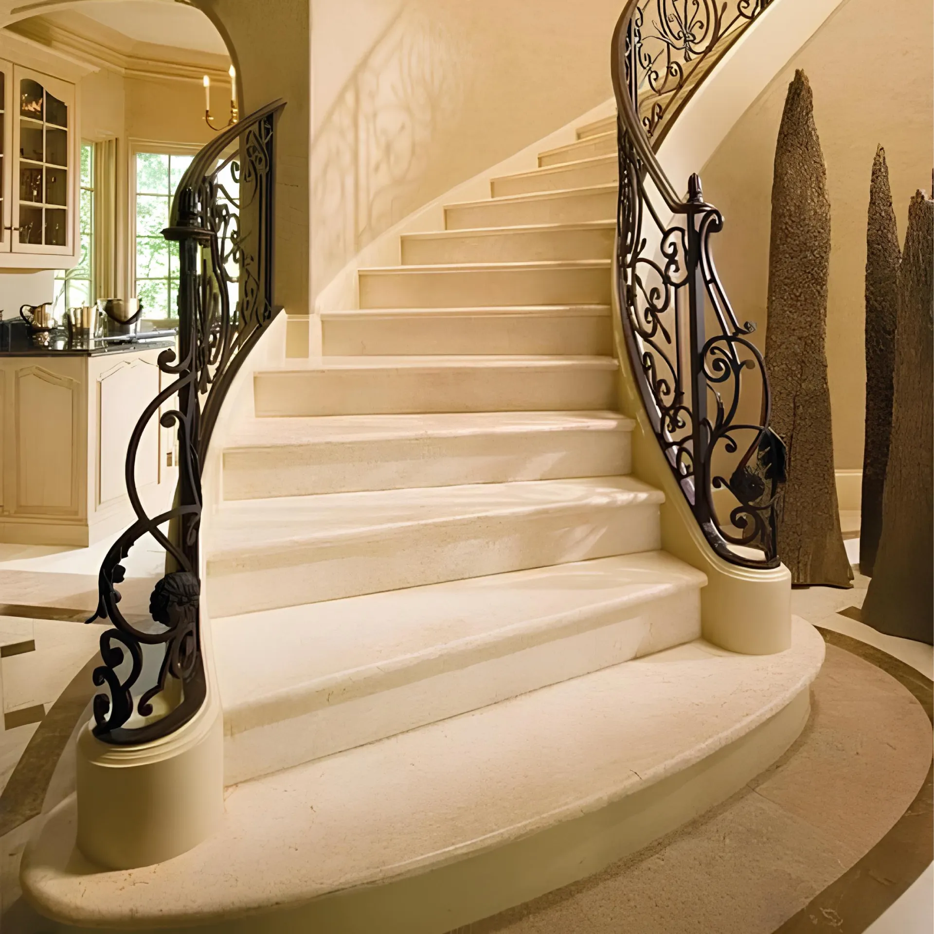 Modern Marble Staircase: This Carrara marble staircase transcends mere functionality, emerging as a kinetic sculpture that redefines spatial perception.