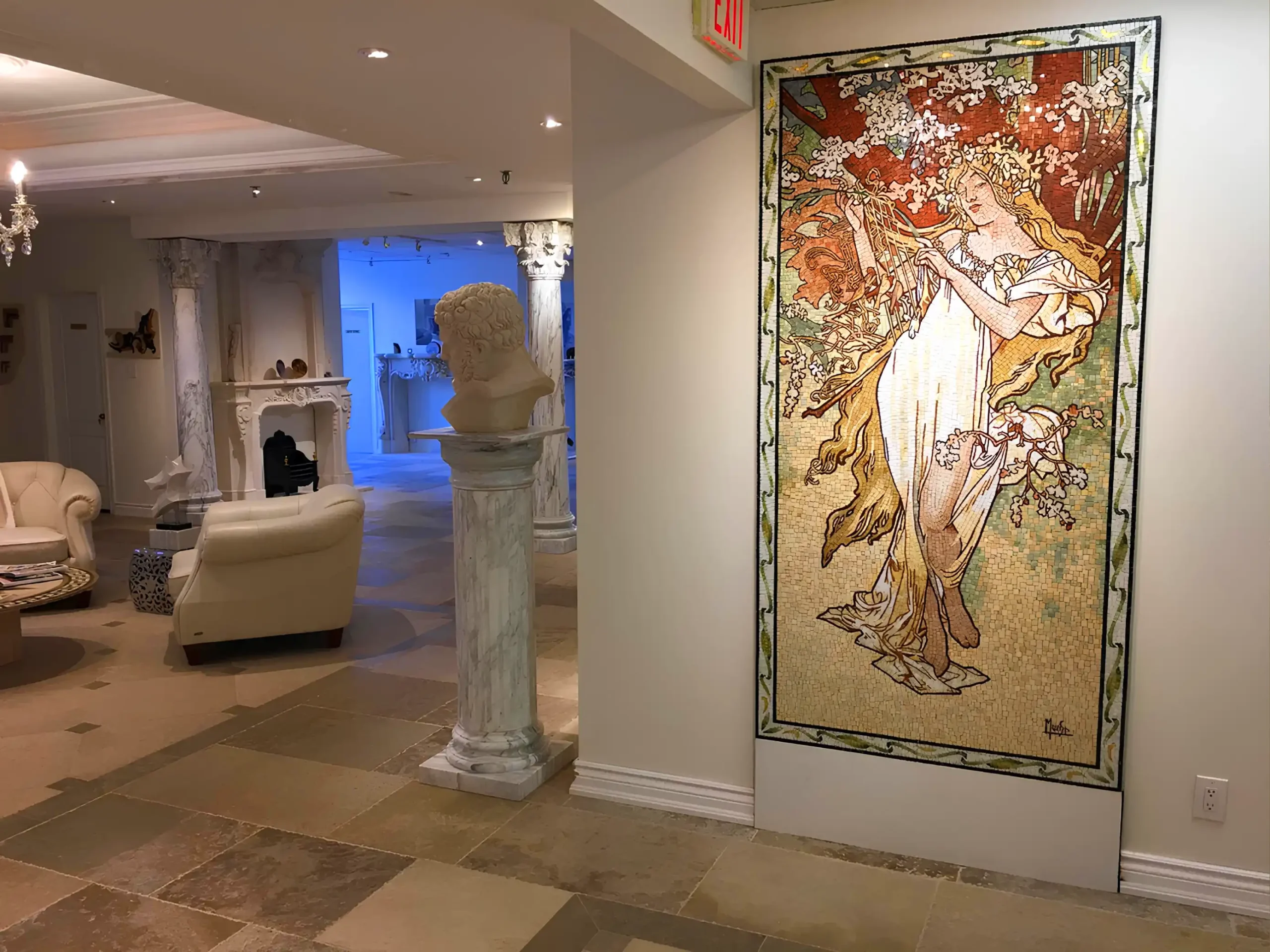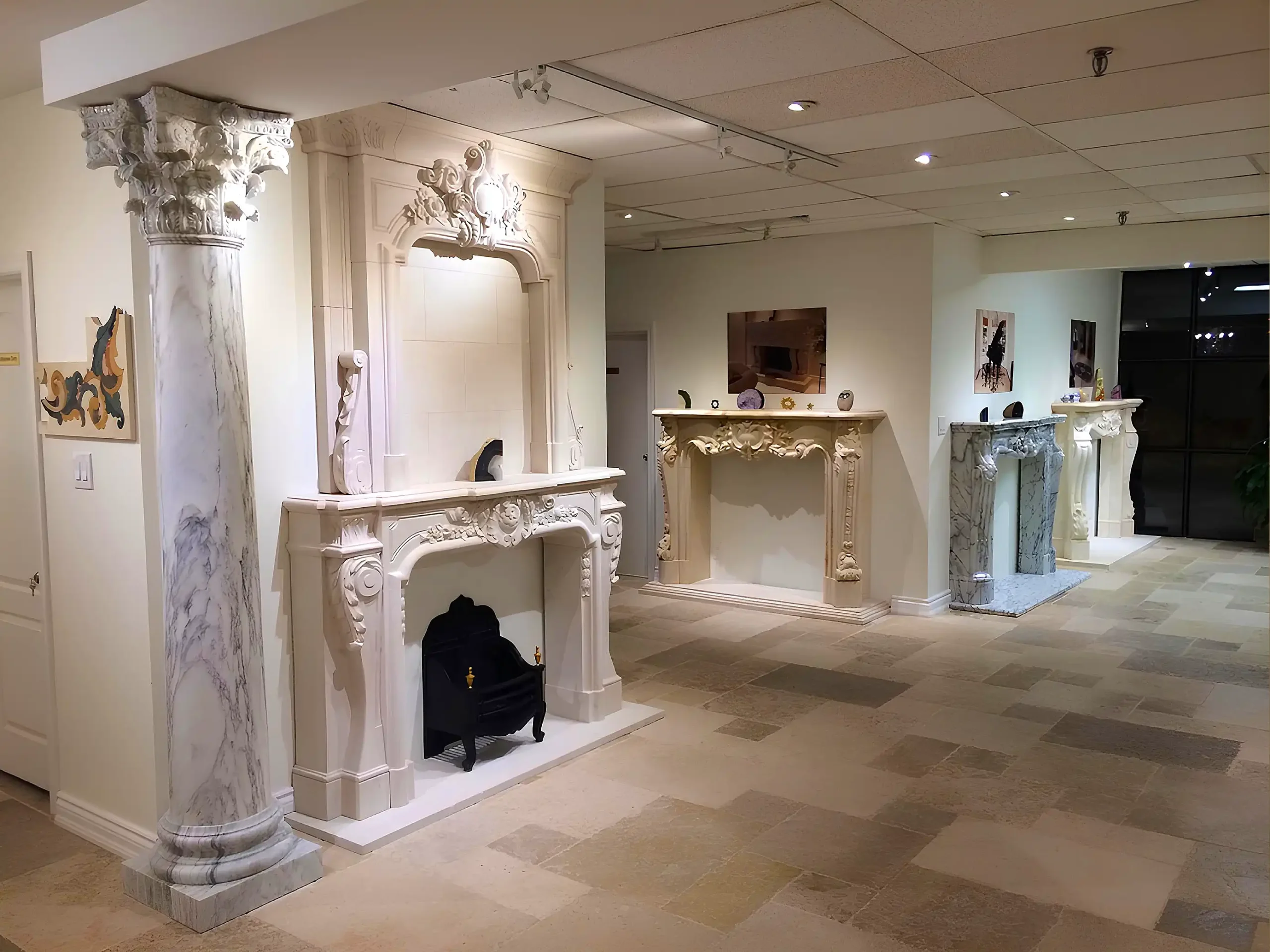 Explore the quiet depth of limestone, the sculptural presence of mantels, the reflective beauty of marble floors, columns, and artistic details.